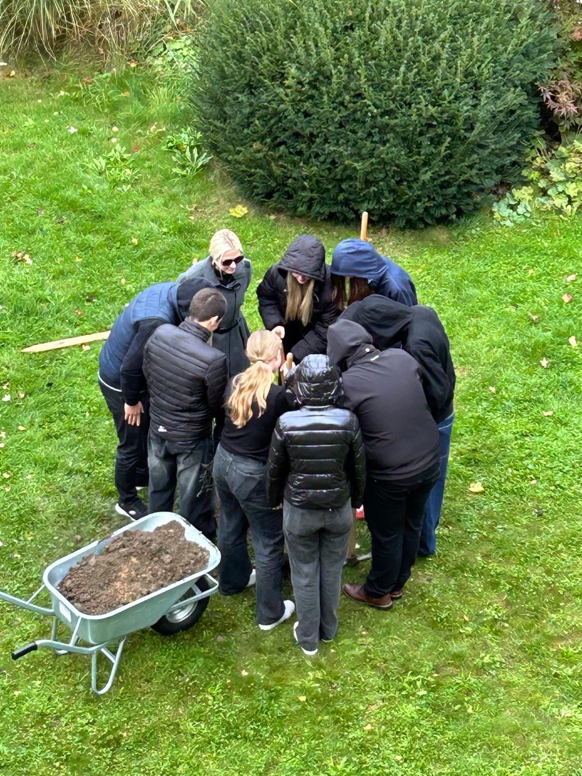 Nominiert von der MS Gröbming, dem Stiftsgymnasium Admont und der HBLFA Raumberg-Gumpenstein, haben auch wir bei Tau und Nebel unseren Schulhof mit einem neuen blutroten Ahorn verschönert. Passend zur herbstlich-schaurigen Jahreszeit trägt unser Baum den Namen „Wednesday“ – ein Hinweis auf den Tag seiner Pflanzung. Ein besonderer Dank gilt dem Schulverein GymStain, der uns den Baum zur Verfügung gestellt hat. Die Anlieferung erfolgte durch unseren Herrn Direktor höchstpersönlich, der Wednesday geschickt in seinem „Monsterauto“ verstaute und sicher in den Schulgarten brachte.